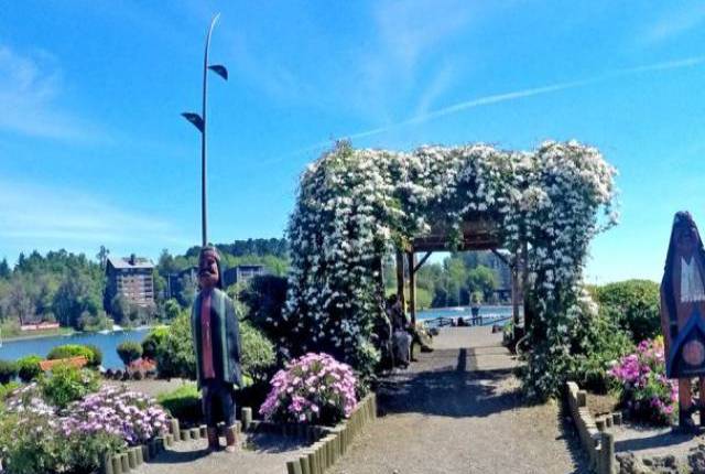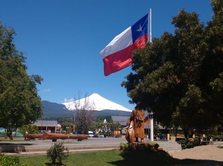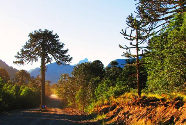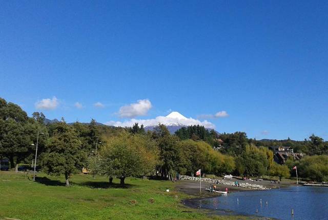 Continuamos bordeando el Río Trancura hasta el poblado de Curarrehue, atravesando paisajes de selva valdiviana con bosques de raulíes y araucarias, lagunas, caídas de agua y formaciones graníticas erosionadas por el tiempo. Luego de recorrer unos 45 kilómetros más, llegamos a Pucón, ciudad turística de nivel internacional ubicada a orillas del Lago Villarrica y casi al pie del Volcán Villarrica, con su fumarola constante y glaciares visibles desde lejos.